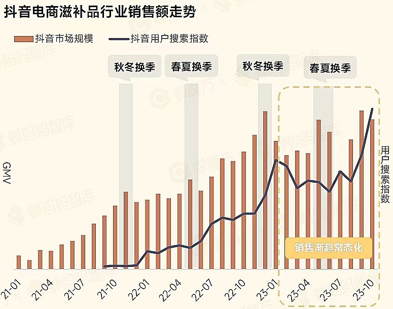 俗話說,“秋冬進補來年打虎”,秋冬正是滋養(yǎng)進補的黃金時節(jié)。從市場數(shù)據(jù)可看出,秋冬換季月份,滋補需求顯著增長,消費者防患于未然意識強烈,養(yǎng)顏滋補、安睡安神、增強免疫力等多種健康需求顯著提升,養(yǎng)肝護肝也逐漸受到重視,成為新興品類,市場規(guī)模持續(xù)擴大。